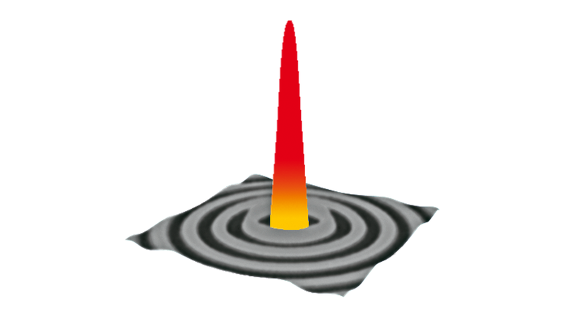 When this wave front encounters a particle, new waves are produced at its edges which run in different directions. Due to the overlapping (interference) of the many new waves it results in a characteristic diffraction pattern behind the particle, which is clearly determined by the diameter of the particle. Its exact progression is described by Fraunhofer theory.